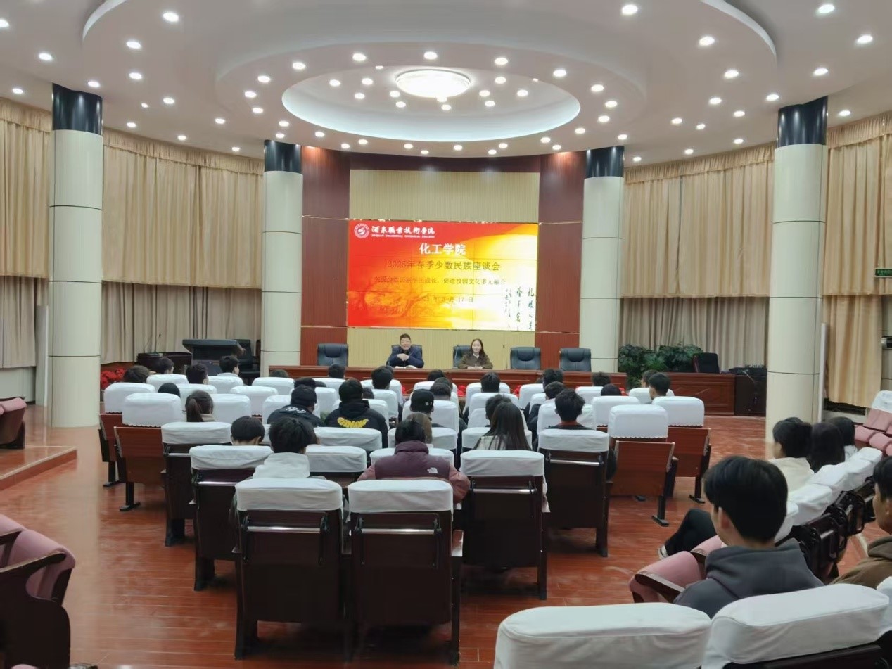 3月17日下午,化工学院在逸夫楼报告厅隆重召开了少数民族学生座谈会。会议由化工学院副院长徐军新主持,学院团委副书记刘康丽以及化工学院少数民族学生参会。