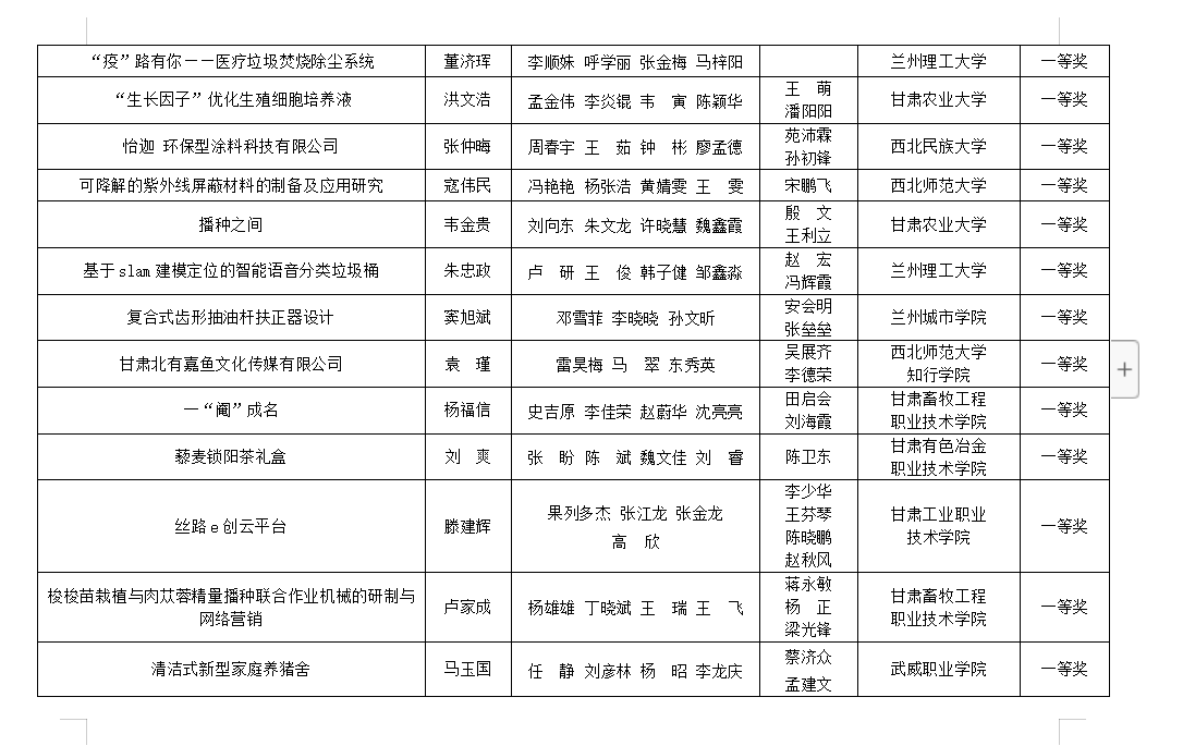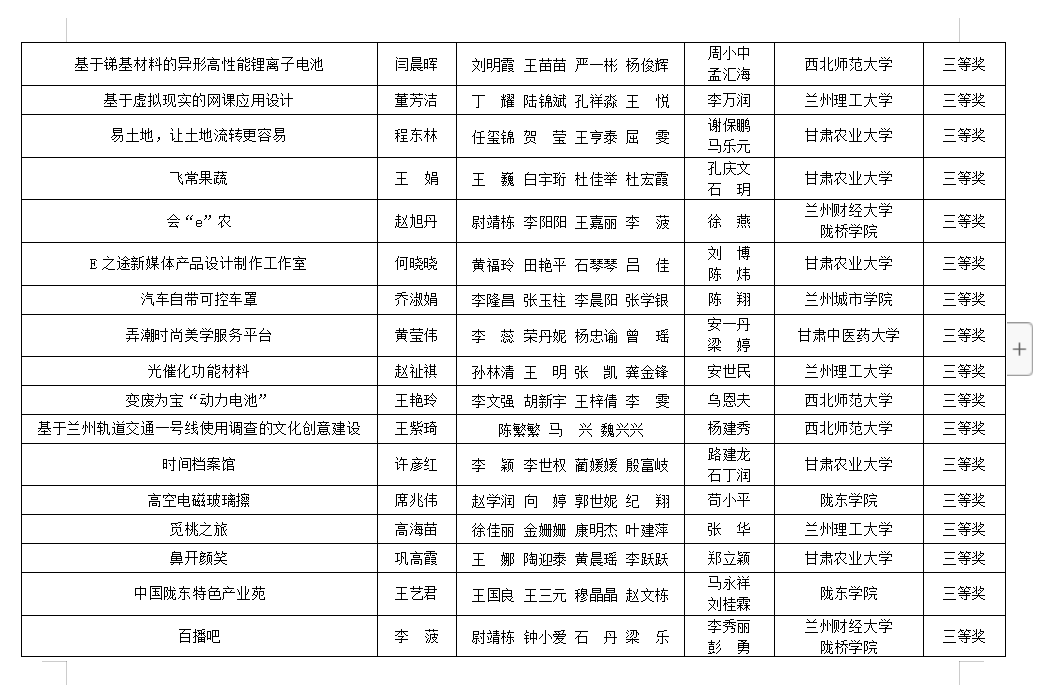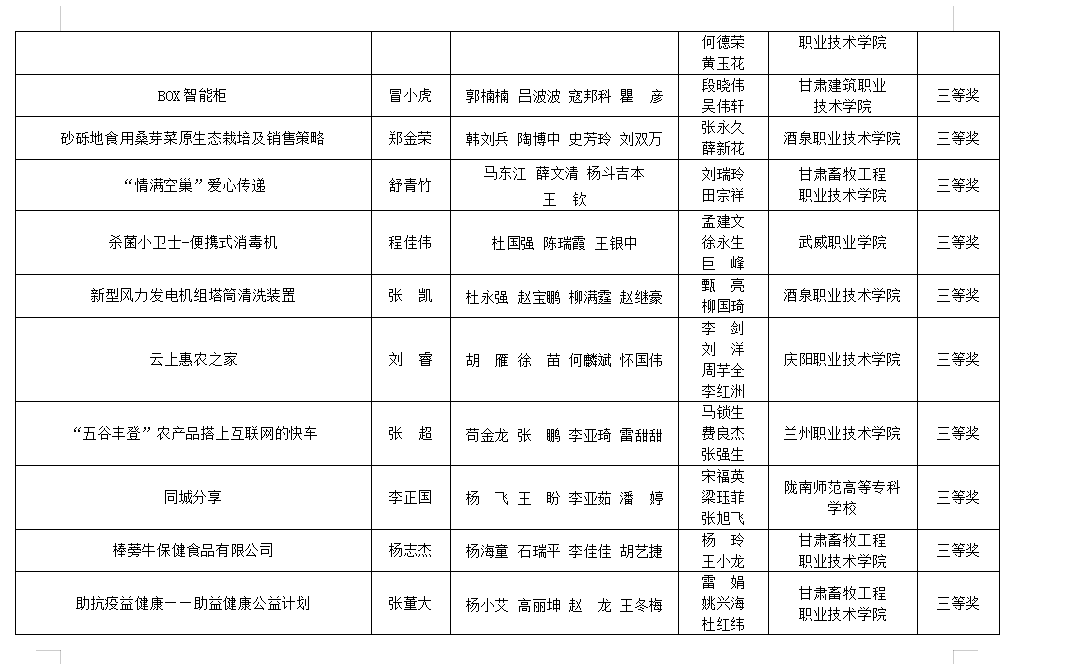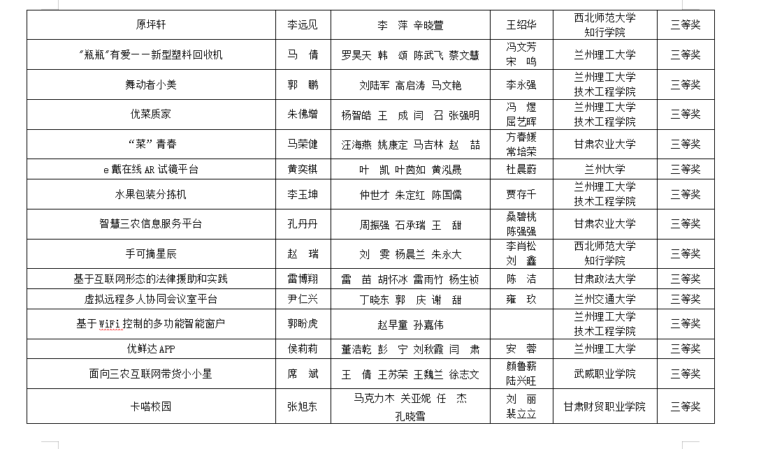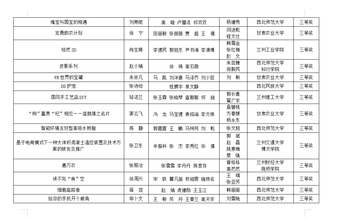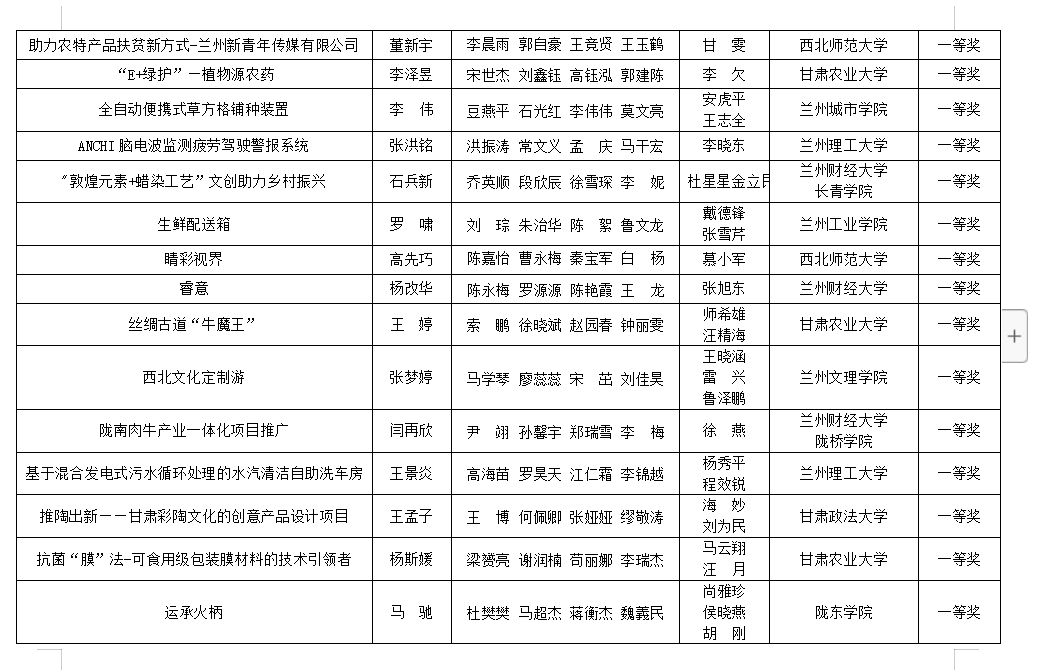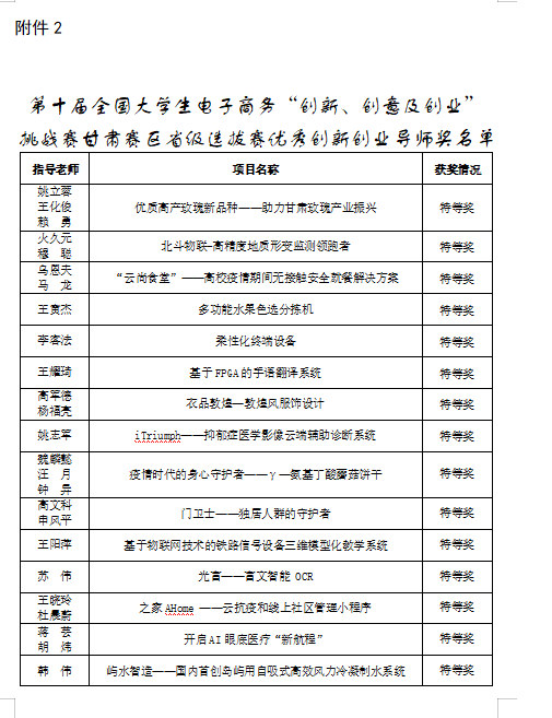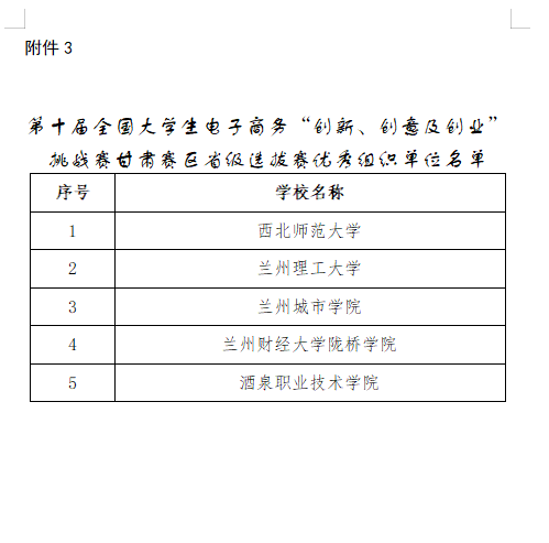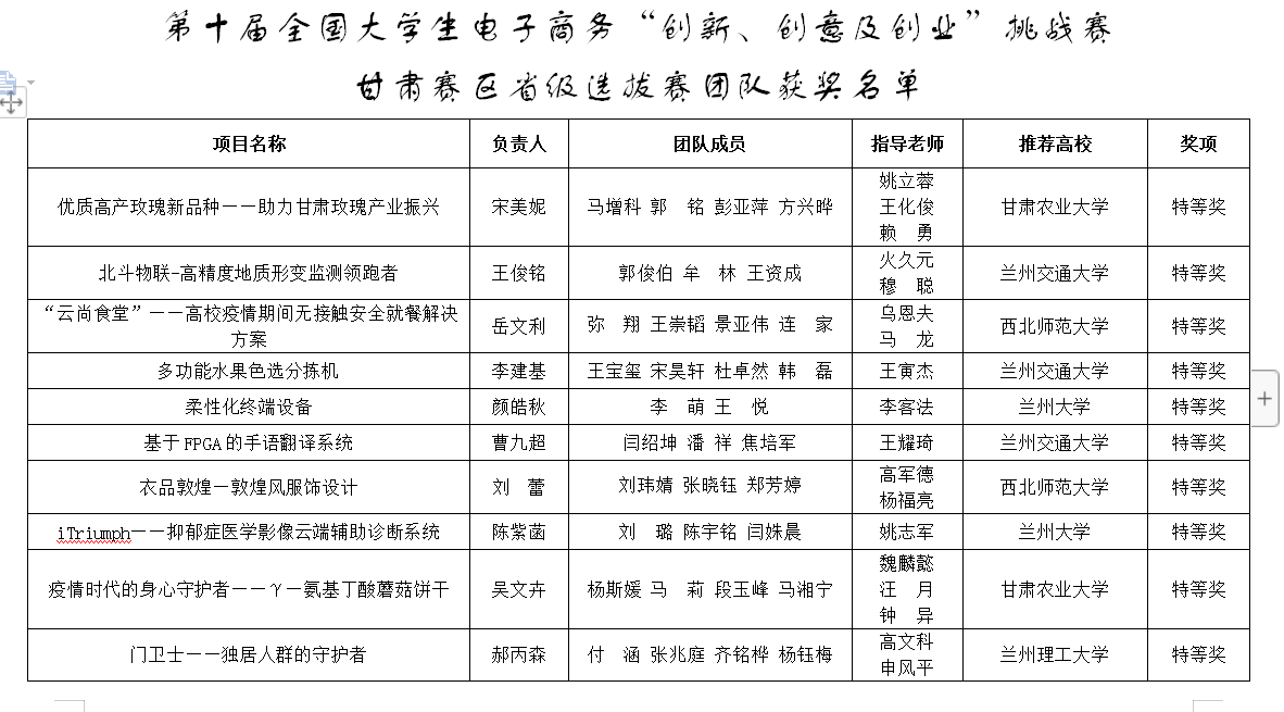 第十届全国大学生电子商务“创新、创意及创业”挑战赛 甘肃赛区省级选拔赛团队获奖名单