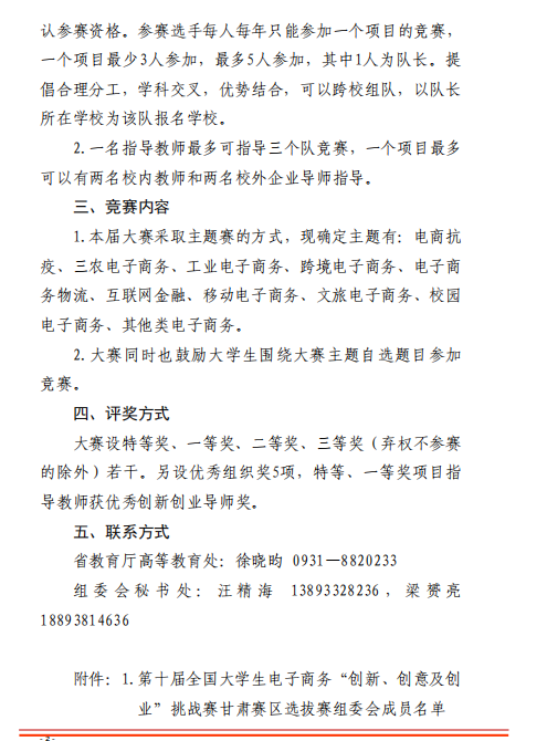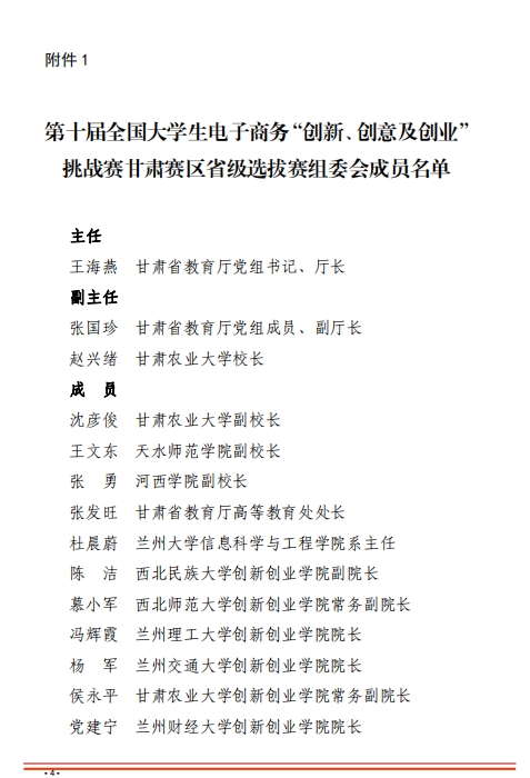 甘肃省教育厅关于举办第十届全国大学生 电子商务“创新、创意及创业”挑战赛 甘肃赛区省级选拔赛的通知
