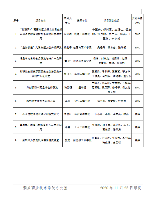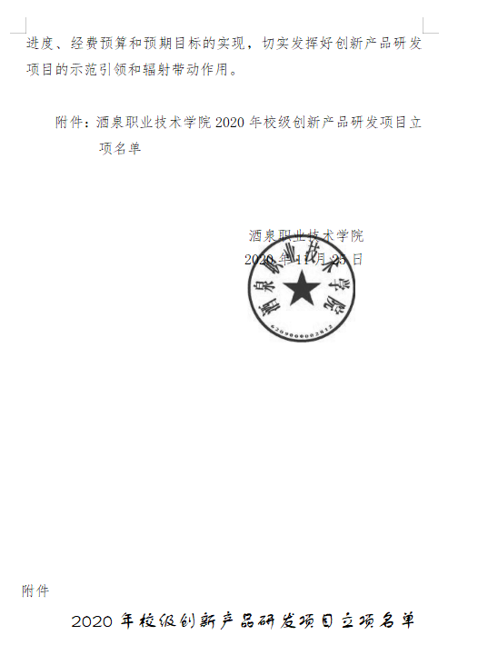 j酒泉职业技术学院关于公布2020年校级创新产品研发项目立项的通知