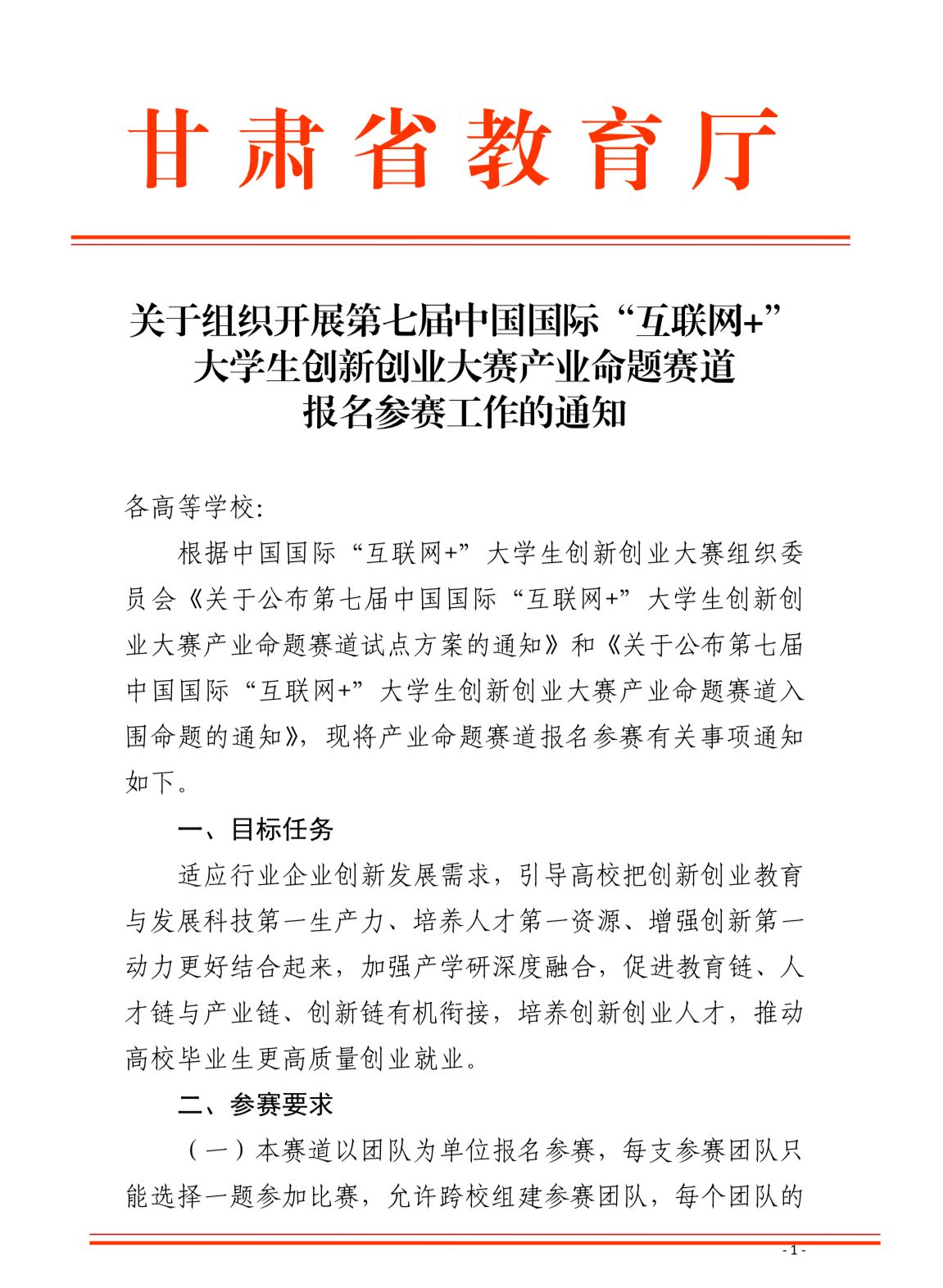 关于组织开展第七届中国国际“互联网+”大学生创新创业大赛产业命题赛道报名参赛工作的通知