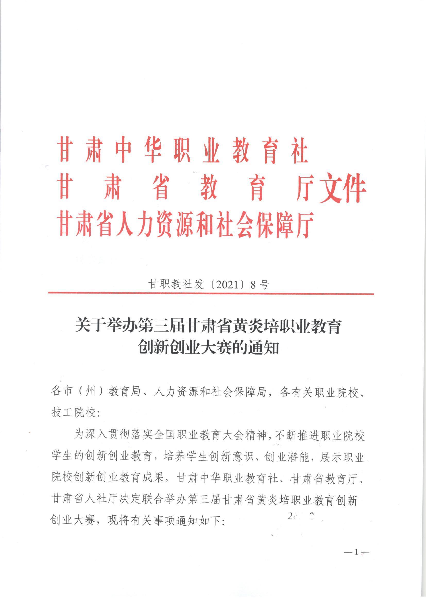 关于举办第三届甘肃省黄炎培职业教育创新创业大赛的通知