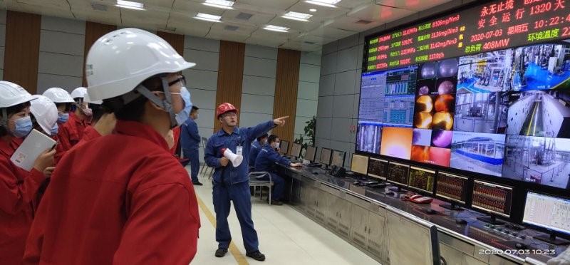 7月3日, 2019级电厂热动动力装置、电厂热工自动化技术专业同学在太阳能与动力工程系副主任李亮及陈祥玉、柳国琦老师的带领下,赴国电电力酒泉发电有限公司,参观学习了热力发电场的锅炉、汽轮机、发电机等各个生产环节的运行过程,了解了主要岗位及其职责。