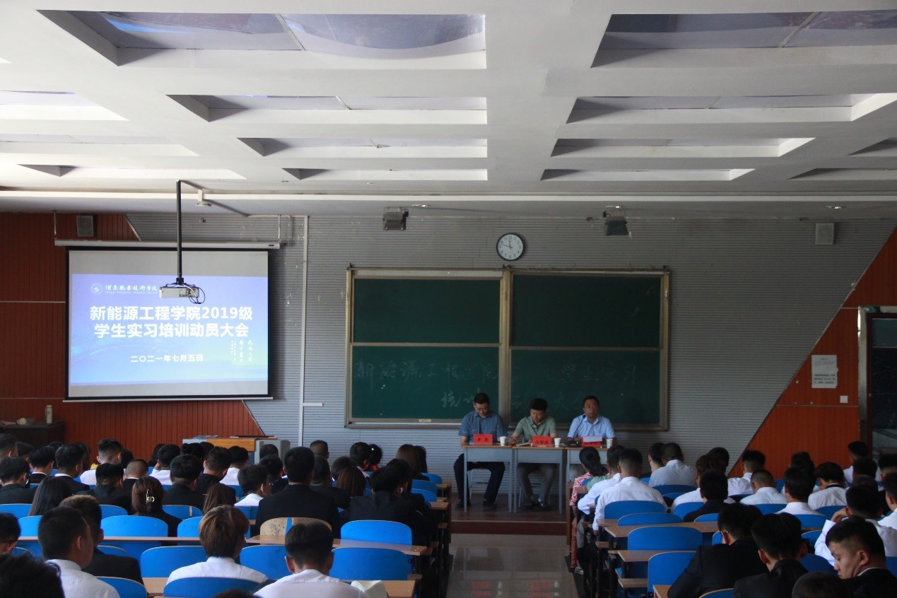 2021年7月5日,新能源工程学院2019级学生实习培训动员大会在行知楼东阶梯教室召开,党支部书记、院长冯黎成、党支部副书记李亮、副院长程明杰、实习班级班主任、指导教师及全体实习学生参加了大会,会议由副院长程明杰主持。